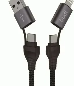 کابل شارژ کنفی ۴ کاره USB/USB-C به لایتنینگ/USB-C بودی مدل Budi DC225CL10B طول 1 متر با گارانتی ۱۸ ماهه شرکتی (۶ ماه تعویض)